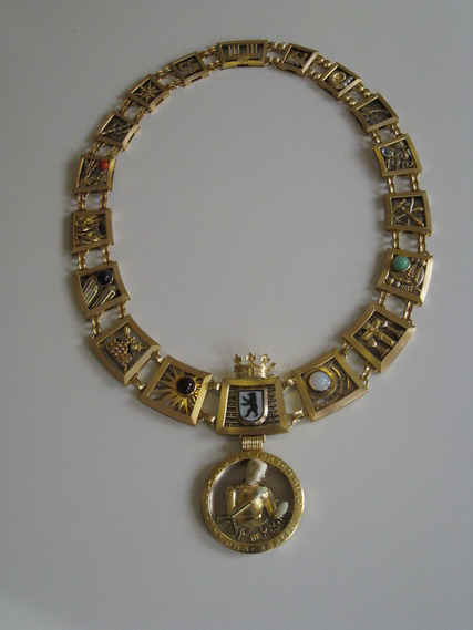Die Obermeisterkette der Gold- und Silberschmiede-Innung Berlin aus 750er Gold und 900er Silber wurde 1955 angefertigt. 16 Meister der Innung arbeiteten freiwillig und unentgeltlich 8 Monate lang.